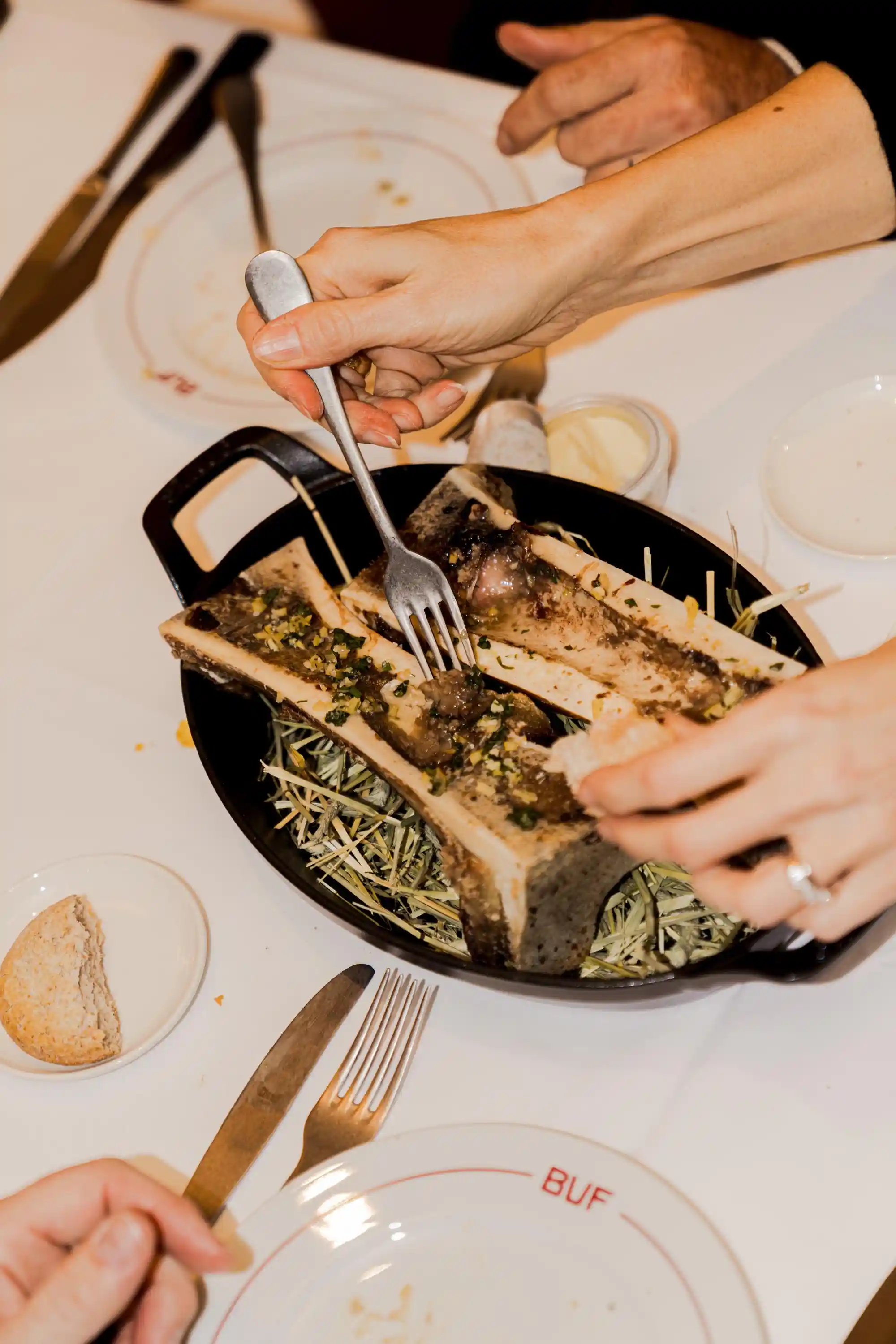 Op de Mibrasa gegrilde Cote a l’os van Belgisch Wit-Blauw Fris slaatje, verse frietjes, 3 sauzen en verse mayonaise. (300 g Cote a l’os pp) Extra gerechtjes om te delen kunnen besteld worden naar believen. Alle dranken a la carte te verkrijgen. (Enkel op reservatie)